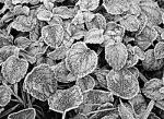 Folhas de Hipericão, segundos antes de respirar sobre elas para derreter os cristais de gelo.