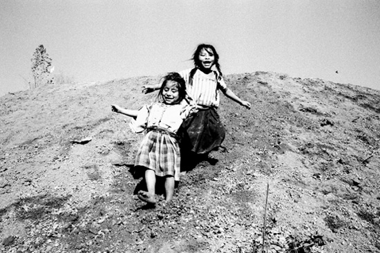 Raparigas indigenas jogando, refugiadas de Jilbejoj.