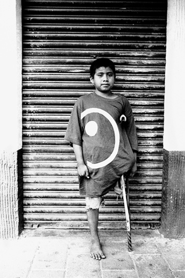 Rapaz indígena aleijado e descalço.