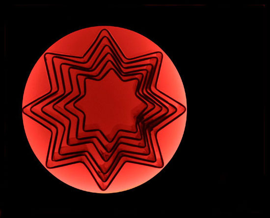 Formas de bolo encaixadas em forma de estrela com uma luz vermelha de fundo.