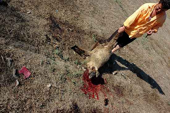 Boucher opérant en extérieur au bord de la route