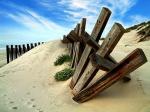 Duna X - Praia de Mira, 2008 - A fotografia apresenta uma estrutura para protecção e construção de uma nova duna, numa zona dunar bastante degradada pela erosão costeira