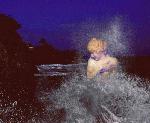 Uma estátua desconhecida, que parece uma senhora suepreendida, no meio das ondas do mar Mediterrâneo, perto do Mónaco.
